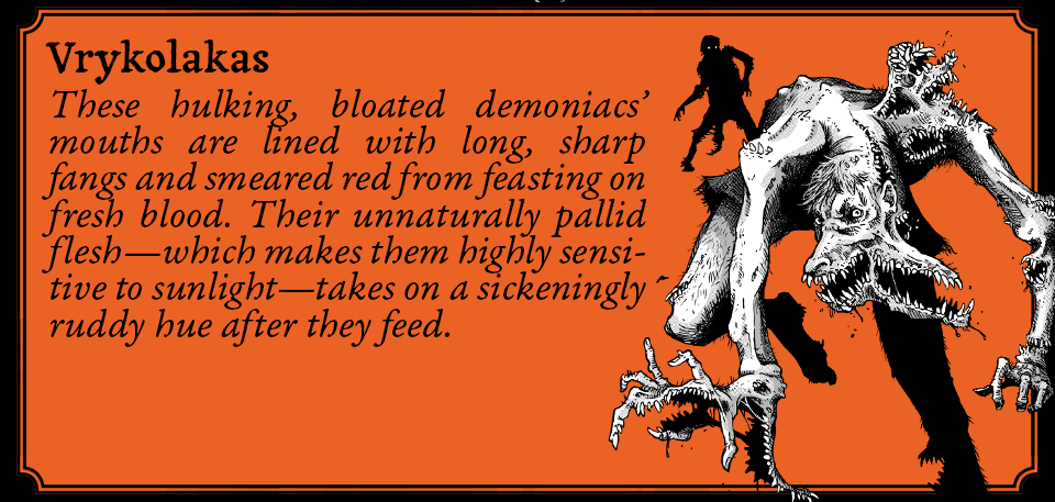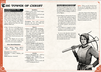 In this tabletop roleplaying game using the Grit System, take on the role of Pilgrims doomed to walk a medieval earth filled with historical intrigue, brutal combat, and ravening hordes of demoniacs—transformed humans consumed by the hunger beyond death (mutant zombies).