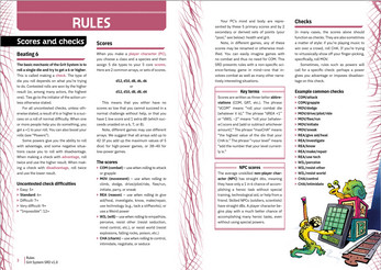 The designers set up this combination of features to support all genres of game, from the simplest of dungeon-delves to the most biting political satire. The Grit System is a "rules-bright" set of rules in which a player character's scores are dice, and they have a resource called grit (GRT) that can fuel special powers or boost any roll.